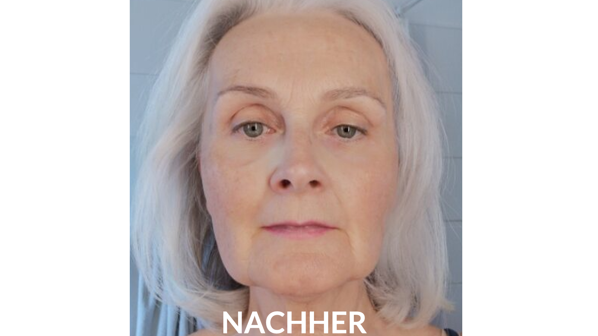 Eine Haut, die glatter, fester und sichtbar erholter aussieht. Falten sind gemildert, Konturen erscheinen definierter, selbst Schlupflider wirken reduziert – der Teint strahlt neue Vitalität aus.